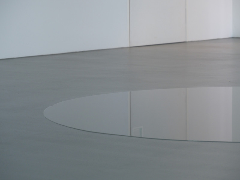 So oder so ähnlich scheinen auch die Architekten Winking und Froh den White Cube zu interpretieren, welchen sie kürzlich als das neue Master Atelierhaus der Hochschule für bildende Künste in Hamburg enthüllten. Unmittelbar im Anschluss an die Einweihung ihres jüngsten Projekts, also im Zustand seiner „Vollendung“ (ab welchem es naturgemäß nur noch bergab geht), durfte ich dort, im Raum 002, meine perfekte Pfütze entwickeln. Damit wurde sie zur ersten künstlerischen Arbeit in diesem Raum, welcher kurz zuvor bloß zur Eröffnungsrede gedient hatte. Die Arbeit begann mit dem Ausgießen einiger Eimer voll Wasser, eine Geste, welche man als einen Akt der Taufe bezeichnen könnte. Damit begann auch meine Suche nach der kartographischen Beschaffenheit des ach so rechtwinkligen Kubus: ein Prozess der Rückeroberung aus der Virtualität zurück in die physische Wirklichkeit. Die Perfekte Pfütze versucht dem perfekten Raum gerecht zu werden, doch bereits nach wenigen Minuten offenbart sich die Wiederspänztigkeit der physischen Realität. Langsam bedeckt sich die spiegelglatte Oberfläche mit scheinbar aus dem Nichts auftauchenden Staubfädchen, bis sich irgendwann nach einem Tag kleine Inselchen auf ihrer Oberfläche bilden. Schon scheint der Boden doch nicht mehr so flach. Es dauert noch gut zwei weitere Tage, bis sich die Pfütze entgültig auflöst, und in die Luft verdunstet, welche die Gäste der Ausstellung einatmen. Zurück bleibt ein „Sediment“ aus Kalk und Staub sowie ein wenig Schmutz der Schuhe derer, welche versehentlich in die Pfütze getreten waren..